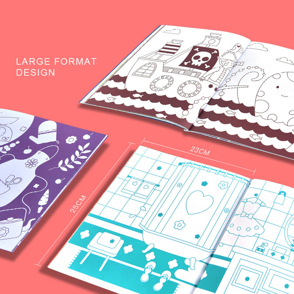 Every child is born to be an artist. The Mideer Coloring Book helps to develop children’s imagination and creativity from random lines and diverse colors to play on the book. Vivid patterns are made up of triangles. Circles, squares, lines, and other graphics. Ingenious coloring cultivates children’s color perception. Pictures in the coloring book can be used for coloring and telling stories, improving children’s language aptitude. Your child can use colored pencils, markers, crayons, and also chalk to color on the paper. The book is printed with food-grade soybean oil ink that is clear and does not fade. Size: 25 * 23 * 0.5 cm